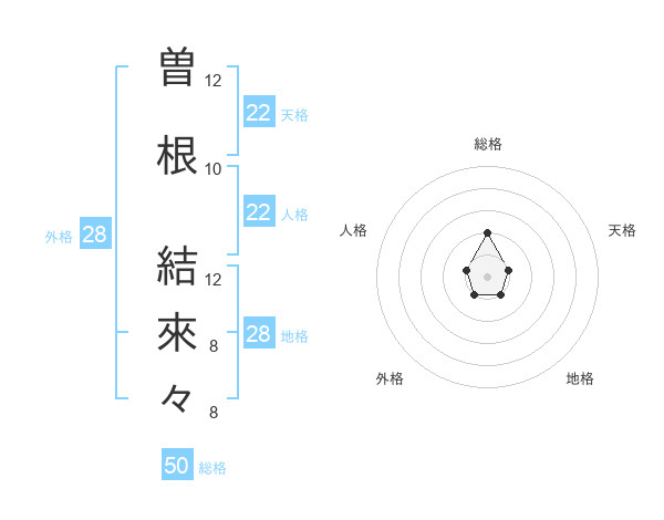 曽根 結來々さんを姓名の画数から五運を鑑定