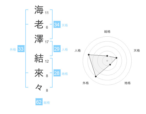 海老澤 結來々さんを姓名の画数から五運を鑑定