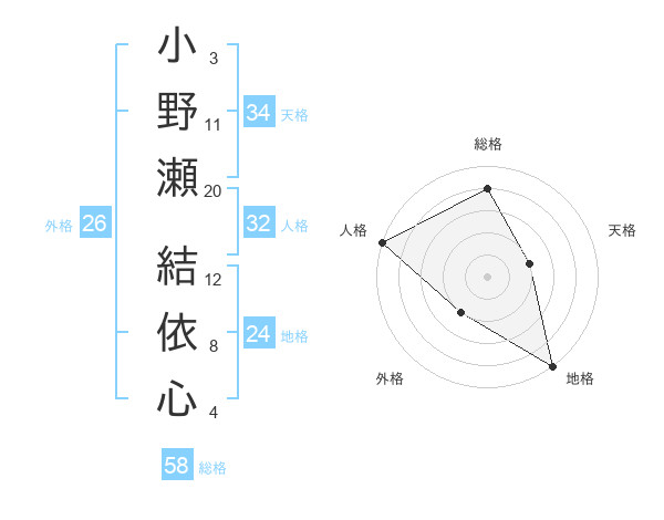小野瀬 結依心さんを姓名の画数から五運を鑑定