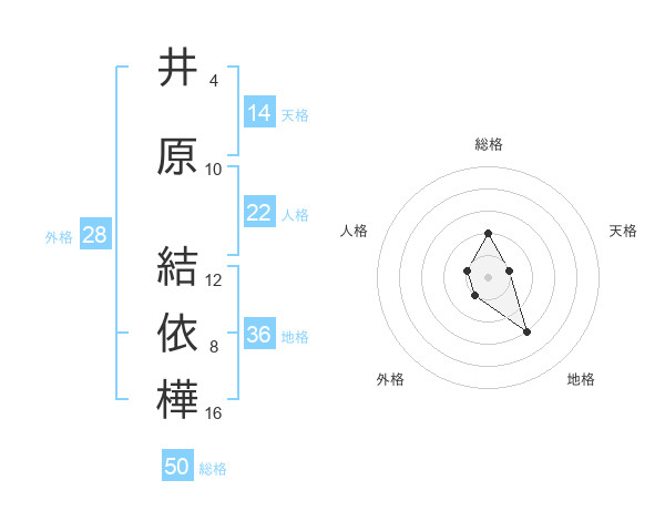 井原 結依樺さんを姓名の画数から五運を鑑定