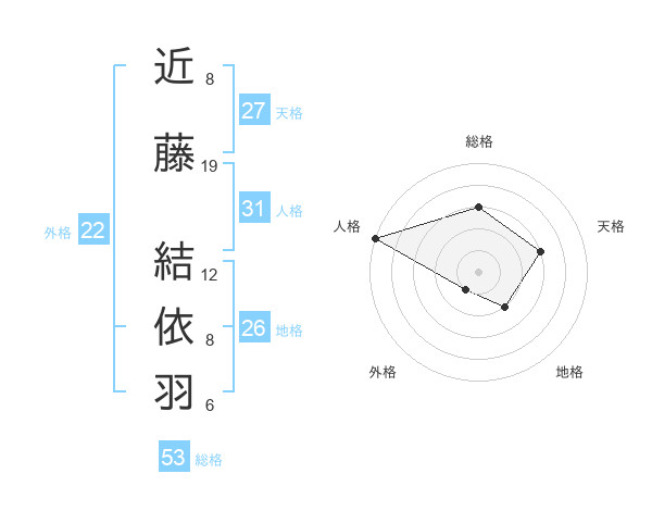 近藤 結依羽さんを姓名の画数から五運を鑑定