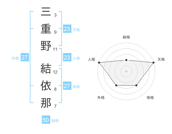 三重野 結依那さんを姓名の画数から五運を鑑定