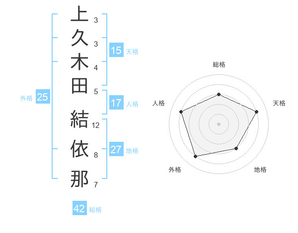 上久木田 結依那さんを姓名の画数から五運を鑑定