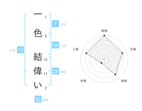 一色 結偉いさんを姓名の画数から五運を鑑定
