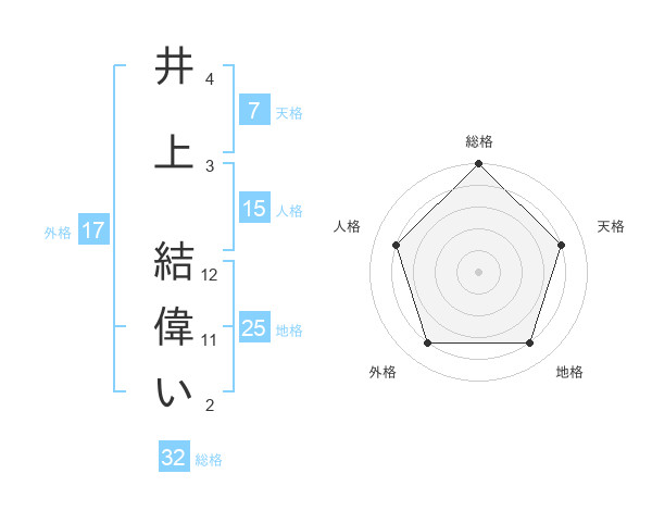 井上 結偉いさんを姓名の画数から五運を鑑定