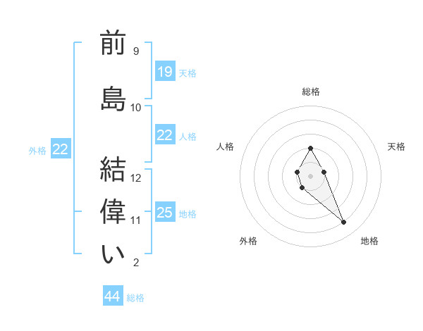 前島 結偉いさんの総格は44画の2点!