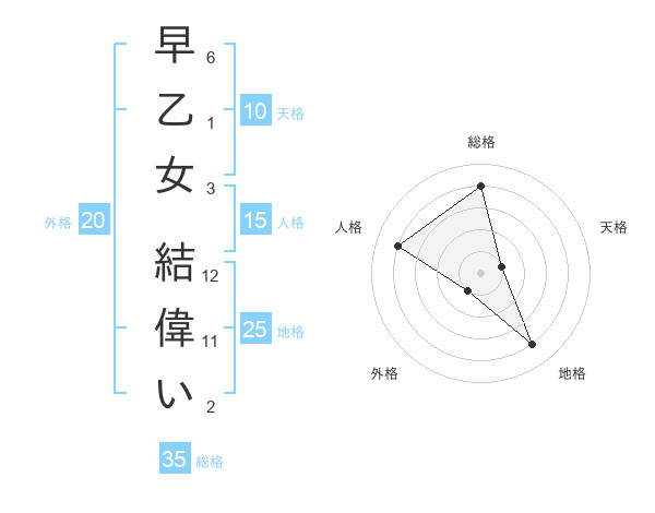 早乙女 結偉いさんを姓名の画数から五運を鑑定