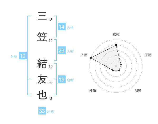 三笠 結友也さんを姓名の画数から五運を鑑定