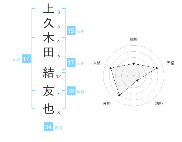 上久木田 結友也さんの外格は17画の4点