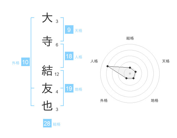 大寺 結友也さんを姓名の画数から五運を鑑定