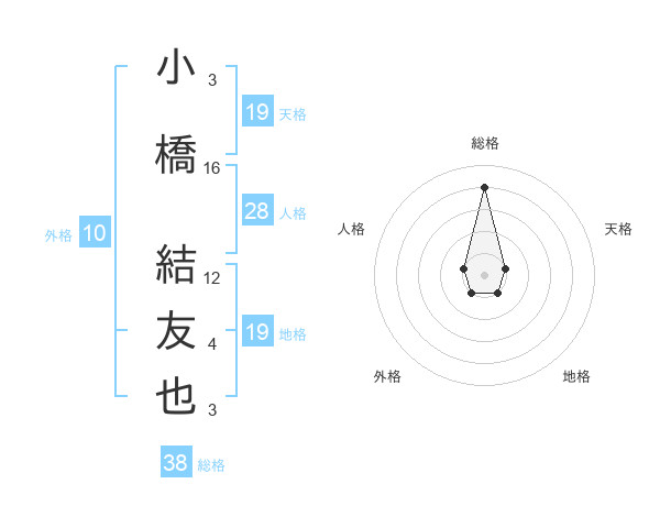 小橋 結友也さんを姓名の画数から五運を鑑定