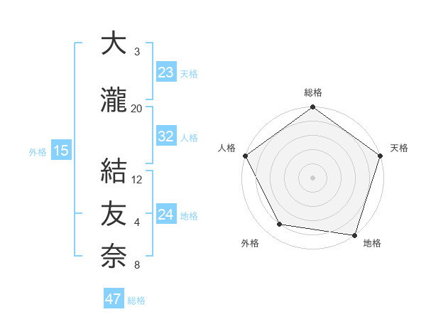 大瀧 結友奈さんを姓名の画数から五運を鑑定