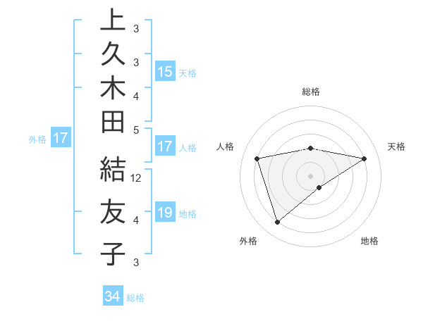 上久木田 結友子さんを姓名の画数から五運を鑑定