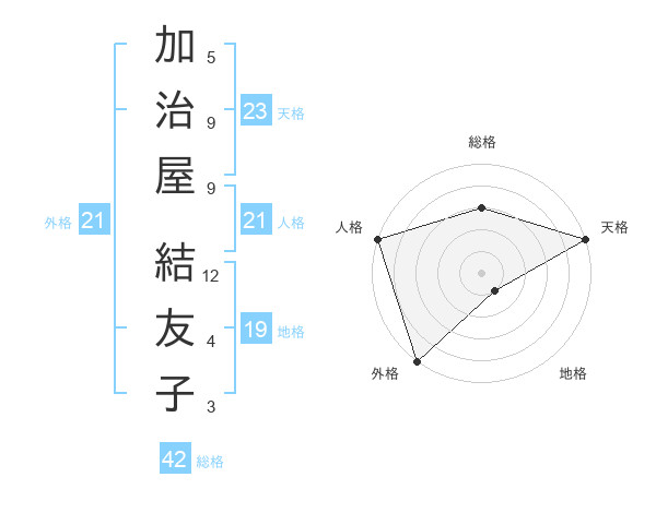 加治屋 結友子さんの天格は23画の5点!