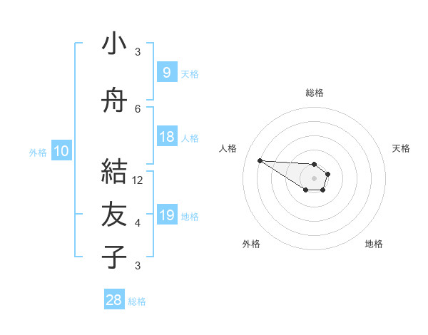 小舟 結友子さんの総格は28画の1点!