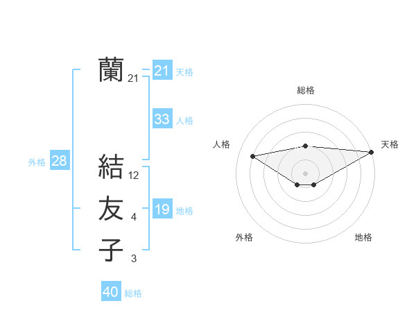 蘭 結友子さんを姓名の画数から五運を鑑定