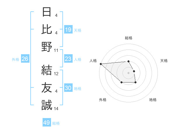 日比野 結友誠さんを姓名の画数から五運を鑑定