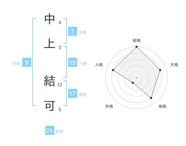 中上 結可さんの総格は24画の5点!