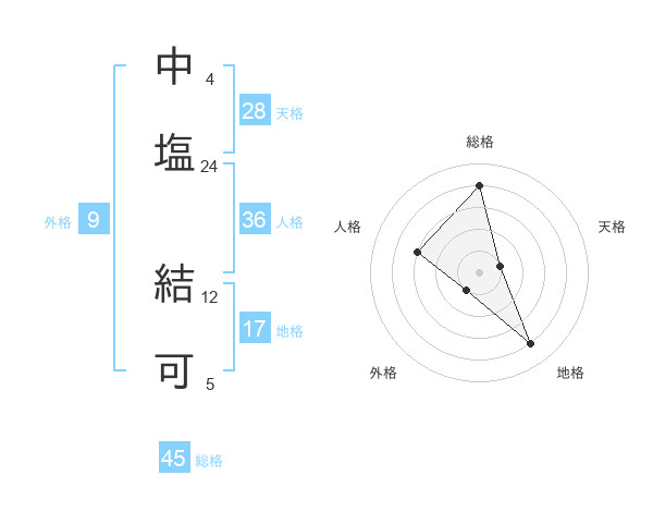 中塩 結可さんの総格は45画の4点!