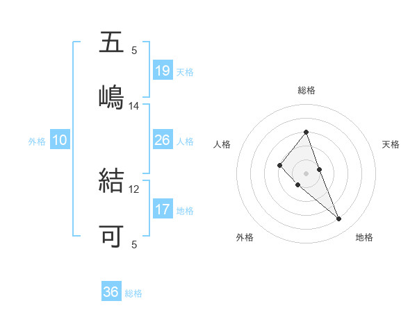 五嶋 結可さんを姓名の画数から五運を鑑定