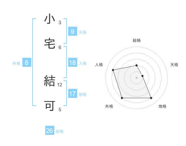 小宅 結可さんの総格は26画の2点!