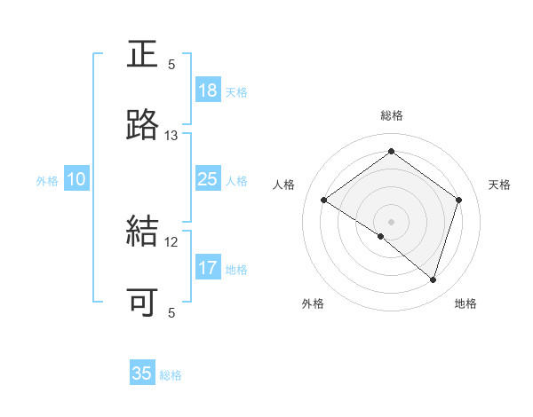 正路 結可さんの地格は17画の4点!