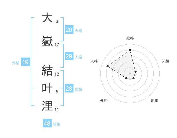 大嶽 結叶浬さんを姓名の画数から五運を鑑定