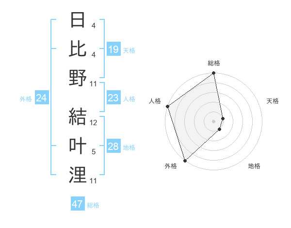 日比野 結叶浬さんの総格は47画の5点!
