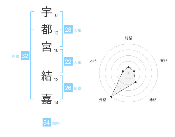 宇都宮 結嘉さんを姓名の画数から五運を鑑定