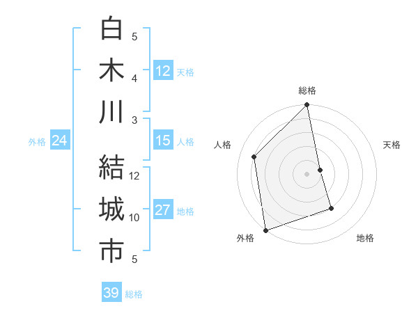 白木川 結城市さんの総格は39画の5点!