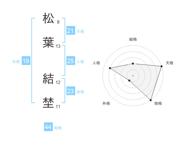松葉 結埜さんを姓名の画数から五運を鑑定