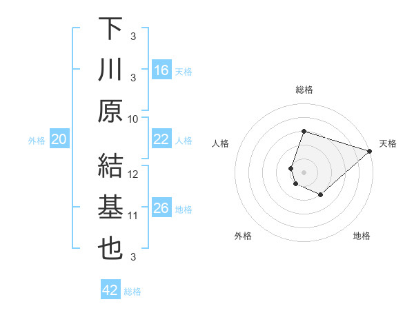 下川原 結基也さんを姓名の画数から五運を鑑定