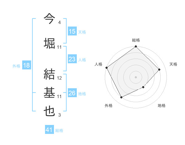 今堀 結基也さんを姓名の画数から五運を鑑定