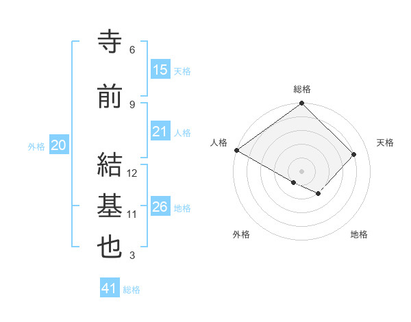 寺前 結基也さんを姓名の画数から五運を鑑定