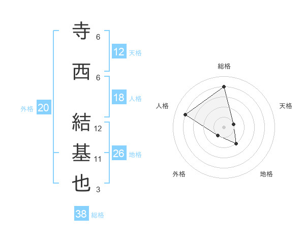 寺西 結基也さんの総格は38画の4点!