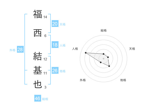 福西 結基也さんの天格は20画の1点!