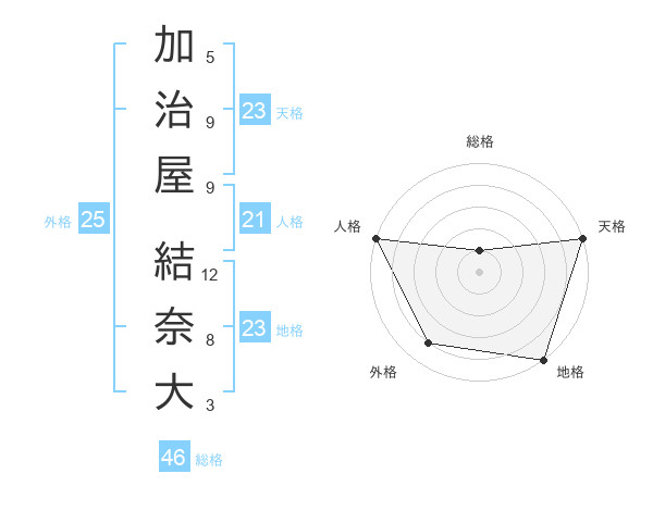 加治屋 結奈大さんの天格は23画の5点!
