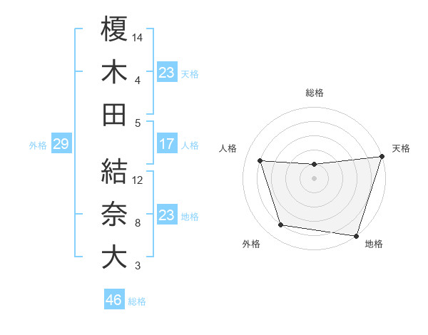 榎木田 結奈大さんを姓名の画数から五運を鑑定