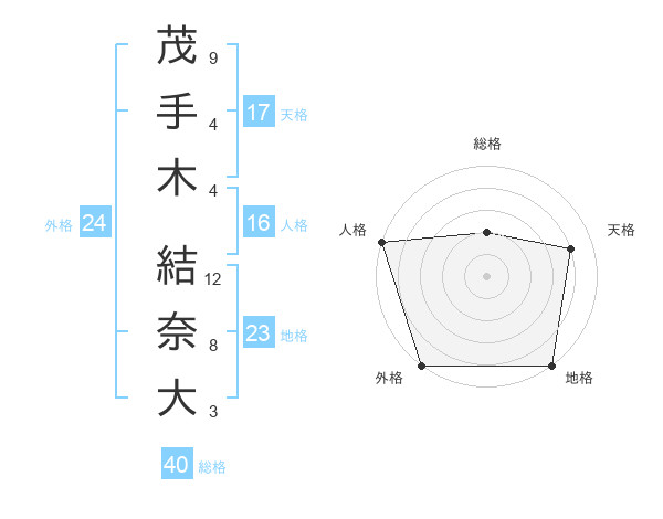 茂手木 結奈大さんを姓名の画数から五運を鑑定