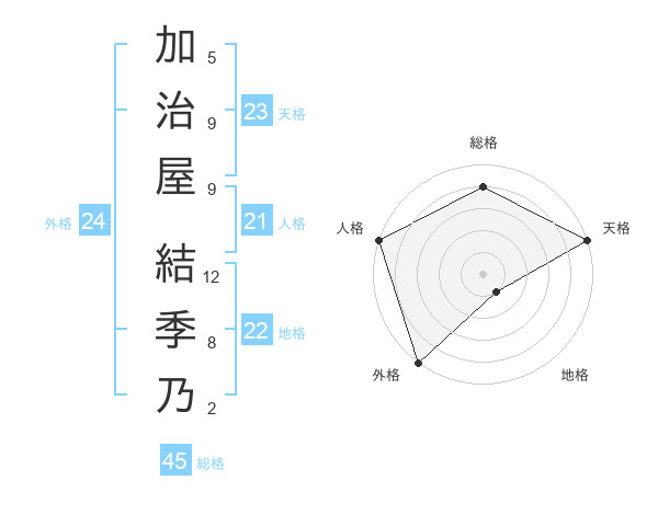 加治屋 結季乃さんの天格は23画の5点!