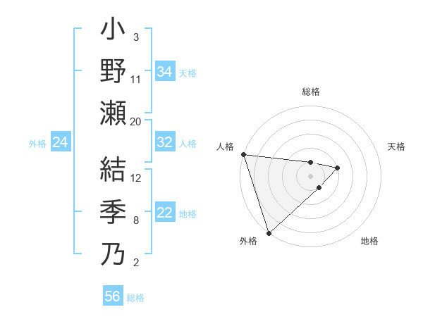 小野瀬 結季乃さんを姓名の画数から五運を鑑定