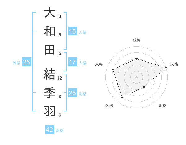 大和田 結季羽さんを姓名の画数から五運を鑑定