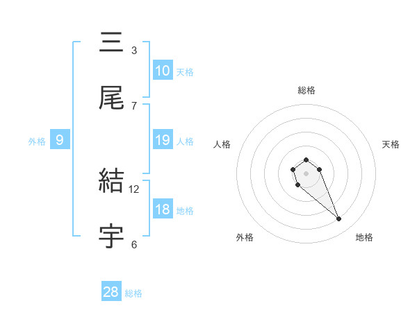三尾 結宇さんを姓名の画数から五運を鑑定
