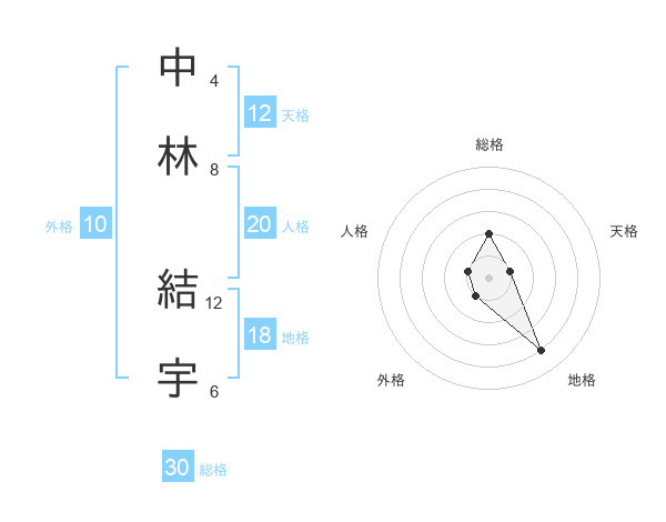 中林 結宇さんの総格は30画の2点!