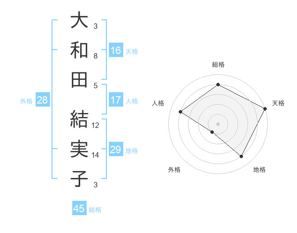 大和田 結実子さんの天格は16画の5点!