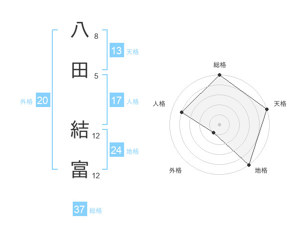 八田 結富さんの総格は37画の5点!