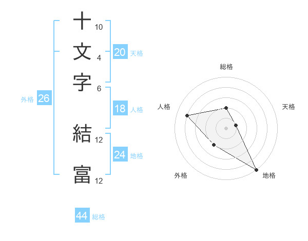 十文字 結富さんの総格は44画の2点!
