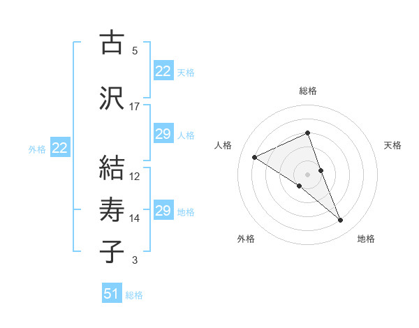 古沢 結寿子さんを姓名の画数から五運を鑑定