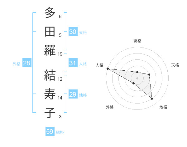 多田羅 結寿子さんを姓名の画数から五運を鑑定