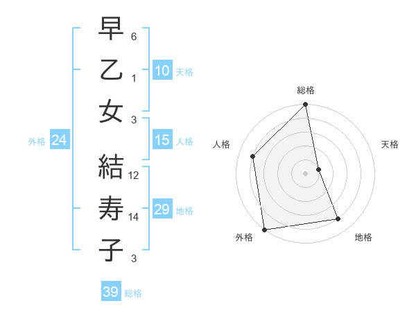 早乙女 結寿子さんを姓名の画数から五運を鑑定
